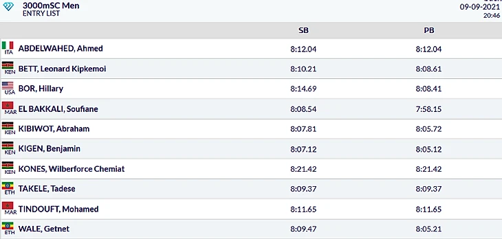 Но будет бежать бронзовый призер и победитель этапа в Париже кениец Бенжамин Киген. В проблемный для Кипруто сезон он сумел стать лидером сборной, хотя и не отстоял многовековое доминирование кенийцев на главных стартах. После Парижа он также стал лидером сезона, хотя все еще ожидаем результата хотя бы из 8:05. Такого плохо по результатам сезона в 21-м веке еще не было, если не считать прошлый, на котором куда сильнее отобразилась пандемия ковида.