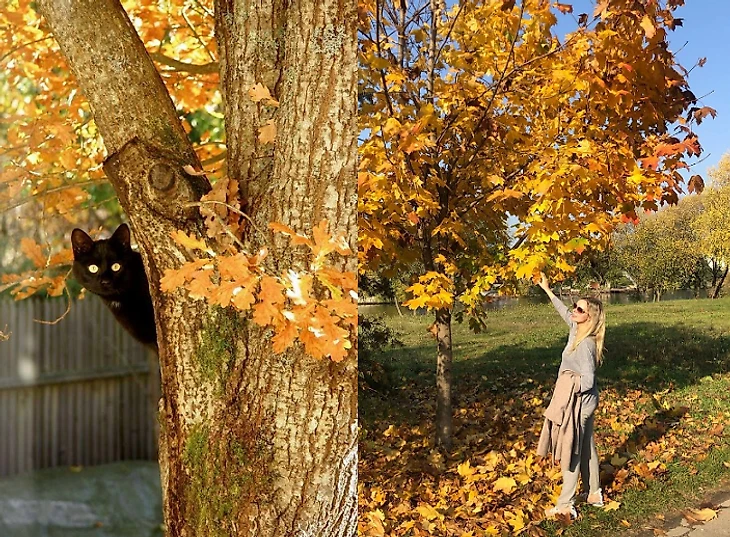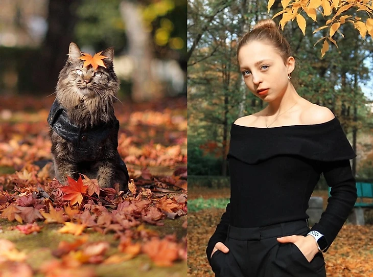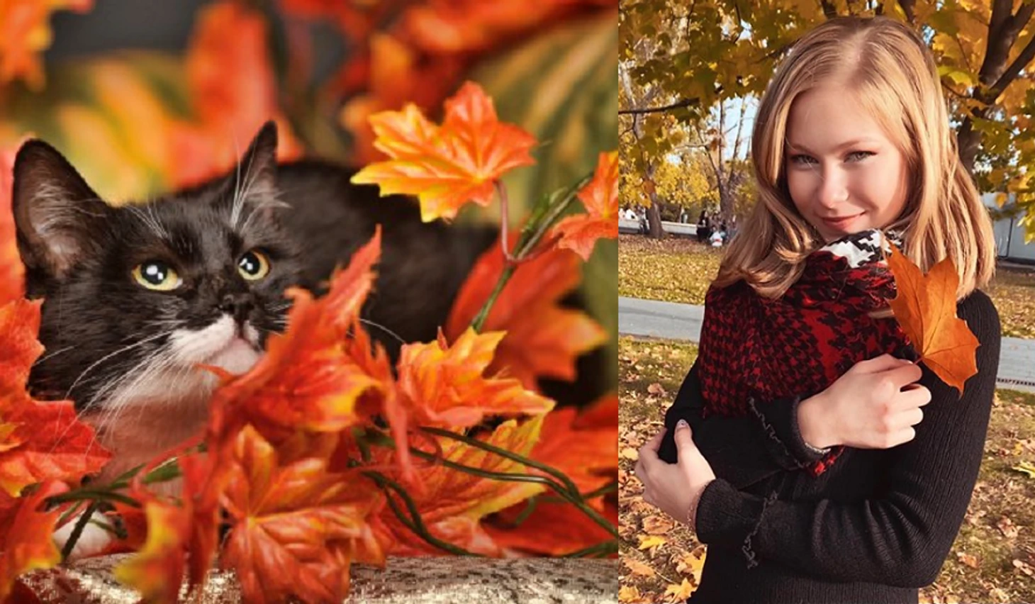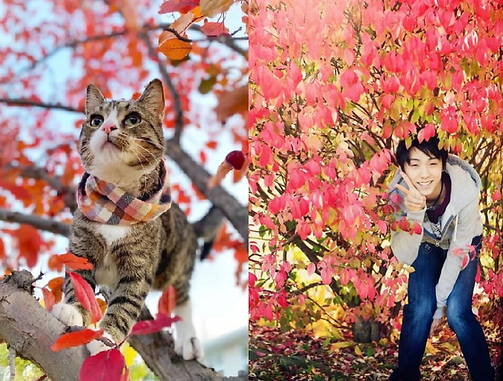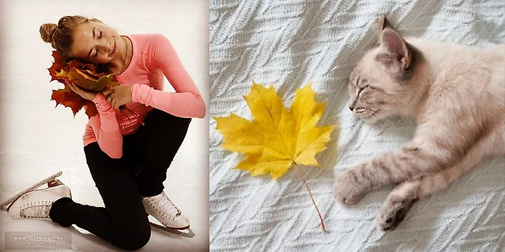 В этот последний день осени хочется вспомнить осень ещё багряно-золотой. И помогут в этом фигуристы и кошки на фоне осенних пейзажей.