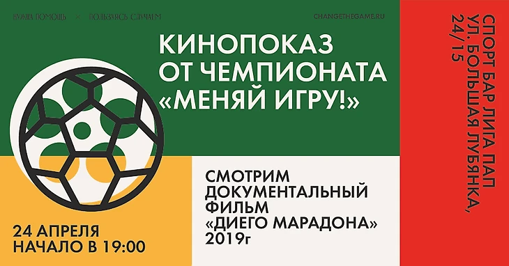 Вместе с нашим партнером — Кинокомпанией Вольга — мы устраиваем открытый кинопоказ фильма «Диего Марадона». Документальный фильм про легенду футбола, с архивными кадрами и интервью. Не говорите, что мы не крутые!