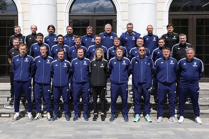 Пьедестальные успехи "Челябинска" последних лет позволили обратить на себя внимание некоторым персоналиям со стороны более успешных клубов. Главный кузнец нашего трехлетнего стабильно-сдержанного счастья в начале июня был замечен в качестве участника сессии тренеров-соискателей лицензии Про-УЕФА, прошедшей в столице. Причем обратите внимание, в какой компании. Думаю, что найдете на фото ниже много знакомых лиц.