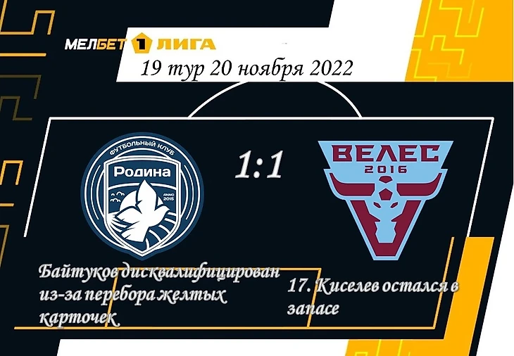«Родина» в первом тайме была более конкретной в плане притязаний на победу. Астраханская тройка центрдефов на 24-й минуте была обыграна в полном составе. После пропущенного гола хозяева стали играть намного активней, располагая защитников очень высоко. На 31-й минуте Печенкин мог сравнять счет – Айдаров сыграл здорово. После перерыва защитник гостей Габараев в не самой очевидной ситуации выловил вторую желтую карточку за фол на Александре Носове. Вскоре «Волгарь» реализовал численное преимущество – Печенкин забросил в чужую штрафную на Делькина – тот скинул Царукяну, который заработал пенальти. Восстановленный паритет как будто успокоил обе команды. Видимо, и те и другие были согласны на ничью. Байтуков вывел на поле москвичей с капитанской повязкой. В одном из эпизодов второго тайма беря разбег на очередной длинный вброс мяча из аута, заработал для тренера соперника предупреждение.