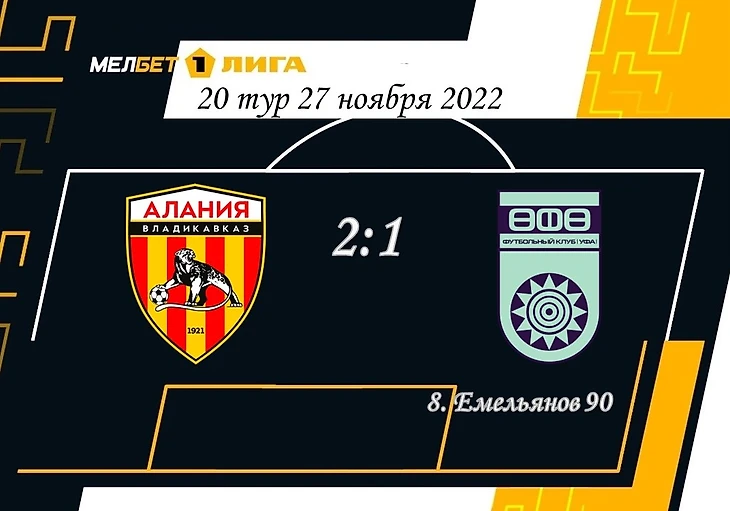 На 25-й минуте Емельянов сыграл рукой метрах в 30-ти от своих ворот. Стандарт привел к очень красивому голу защитника «Алании» Татаева. Чуть позже восьмерка «Уфы» исправился: Данила отобрал мяч у штрафной соперника, и тут же подхвативший его Минаев получил по ногам. Первый уфимский стандарт в матче не в исполнении Емельянова – красивейший гол Евсеева. Во втором тайме номинальные хозяева выглядели предпочтительней – и снова забили после розыгрыша штрафного. Здесь уже гостям крыть было нечем. «Уфа», наблюдая за грациозным прыжком «Велеса» из зоны прощания с Первой лигой, рухнула туда сама.