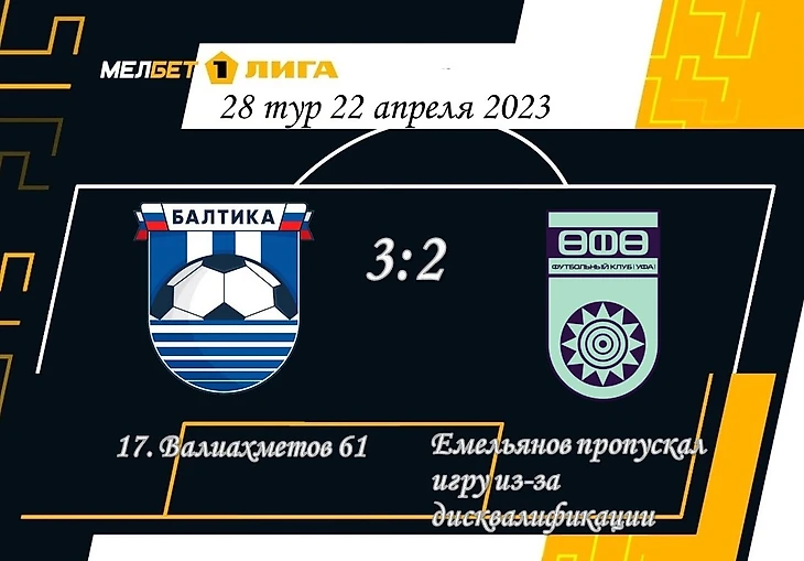 «Балтика» получила право на штрафной на 4-й минуте, и, конечно же, это стало катализатором забитого мяча. Балтийцы в концовке первого тайма создали целый каскад моментов. На 35-й минуте Валиахметов опасно бил головой – Хамхоев выручил. В это время Эдуард вообще совершил несколько удачных действий в атаке. «Уфа» вообще не контратаковала. Но при этом на перерыв ушла с ничейным счетом. Показав «Балтике», что в стандарты умеют не только в Калининграде. В перерыве Игнашевич выпустил Фольмера. Маляров, Фольмер и Валиахметов впервые в чемпионате выступили как трио. Им не хватало еще Дудиева. Аслан вышел на 62-й минуте, но поменял Валиахметова, и выступление атакующего флангового квартета балтийцев отложилось не неопределенный срок. Игравшего на месте дисквалифицированного Емельянова Каталина Карпа Халимбеков также убрал в перерыве – не хватало Данилы гостям. Кульминация игры состоялась в последние 15 минут. Хозяева забили дважды. На 93-й минуте «Уфа» сделала счет 3:2. А на 95-й Ортис бил головой в самый угол, но Латышонок отстоял для своей команды максимум очков в этом поединке.