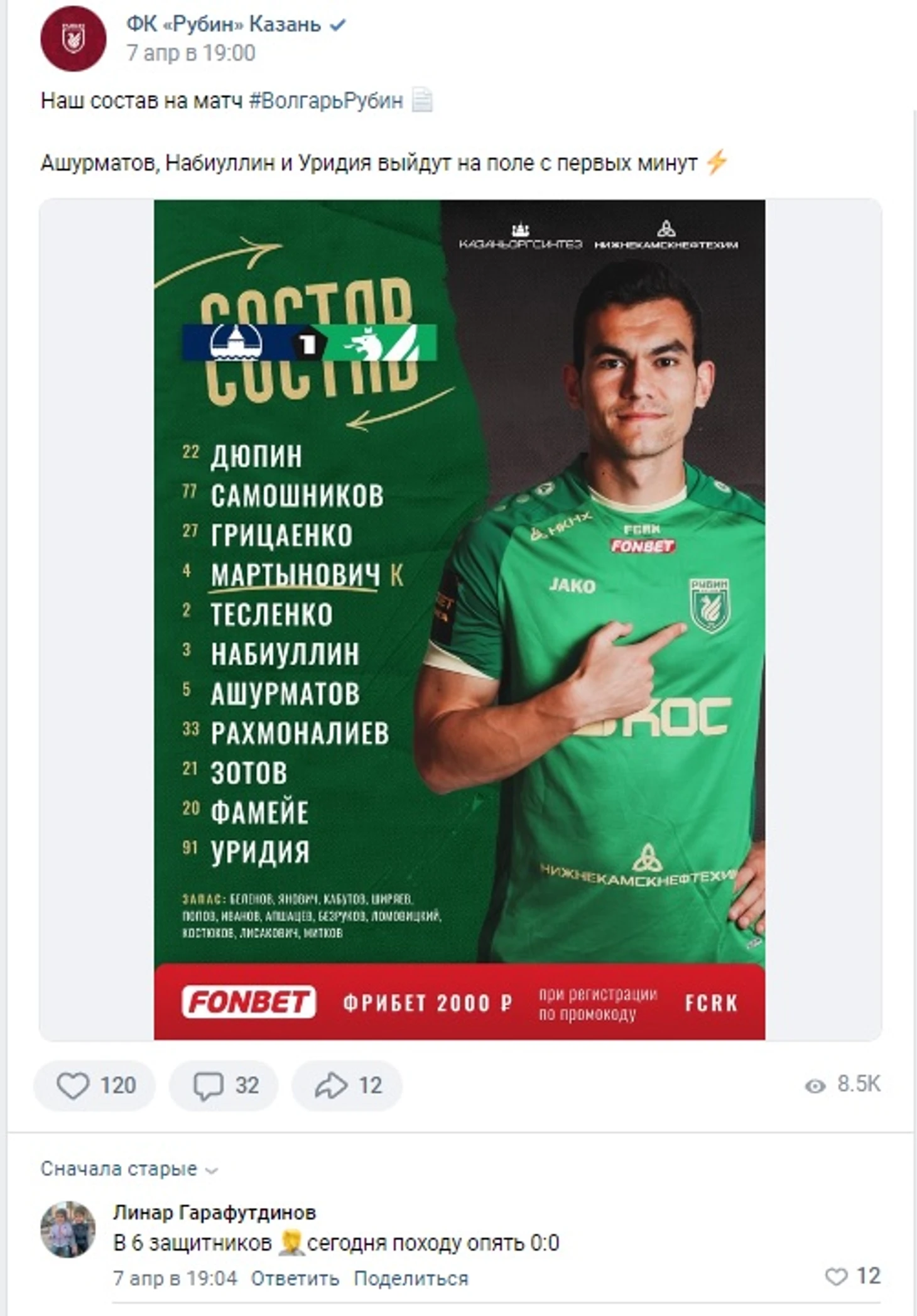 Лидерство Кирилла Фольмера во всей лиге в рейтинге Инстата по итогам прошлого тура и возвращение в строй Малярова после дисквалификации не позволило Валихаметову рассчитывать на игровое время.