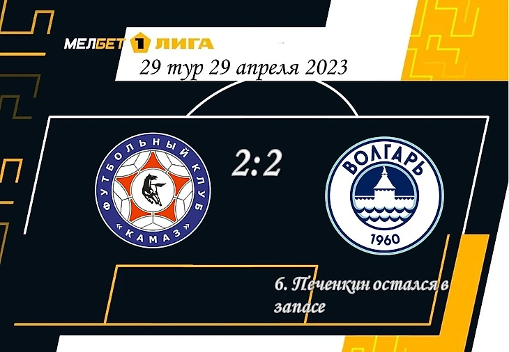 Восстановление Ивана Хомухи отправило Печенкина на скамейку запасных. «Волгарь» пропустил до истечения полуминуты игры – голевая атака хозяев прошла по центру. Челнинцы были очень симпатичны до перерыва. На 36-й минуте угрозу от своих ворот отвел Олег Смирнов. А чуть позже и он был бессилен – «КамАЗ» забил после навеса Гаглоева с фланга. Что интересно – у автозаводцев отличились правый защитник и правый полузащитник.