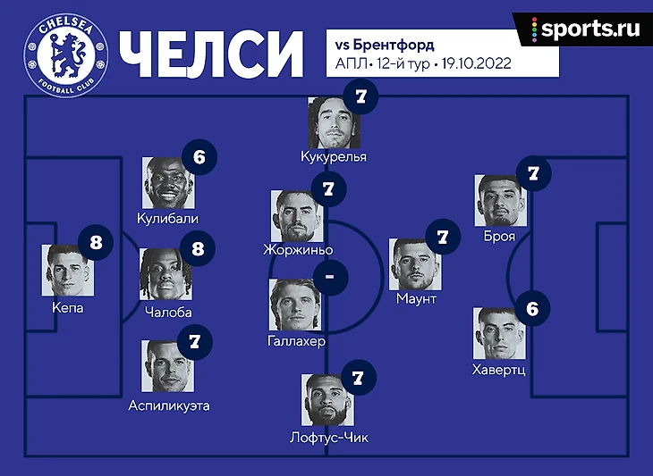Матео Ковачич (8) – сегодня хочется больше поговорить об игроках, вышедших на замену. Хотя Матео относится к запасным лишь формально – он вышел уже на 15-й минуте вместо Конора Галлахера. Хорват стал одним из ключевых звеньев в билдапе: если до этого прессинг «Брентфорда» проходилось не удавалось, то вместе с Ковачичем «Челси» начал наконец преодолевать центр поля. Это стало переломным моментом тайма: «Челси» забрал инициативу.