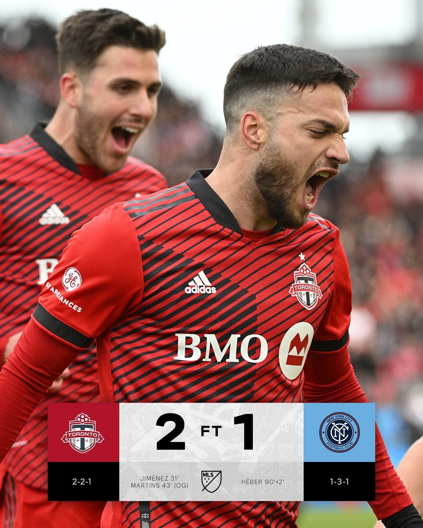 Стартовые 30 минут игры прошли в равной борьбе, с небольшим территориальным преимуществов гостей. Хозяев это не смущало совершенно, более того они впервые в этом сезоне чувствовали себя уверенно без мяча. Начиная с 30-й минуты и до конца первого тайма команда Боба Брэдли стала играть агрессивнее в контратаках. В этот же промежуток времени были забиты 2 гола Торонто, отличился Хесус Хименес, а также в свои ворота мяч отправил Тьяго Мартинш, 2:0 к перерыву в пользу Торонто. Во втором тайме Сити был вынужден больше атаковать, чтобы отыграться, но голкипер Алекс Боно долгое время не хотел пропускать, за матч у него накопилось аж 7 спасений. В концовке он все же пропустил, но на результат это никак не повлияло. Победа Торонто позволяет им обойти Нью-Йорк в турнирной таблице.