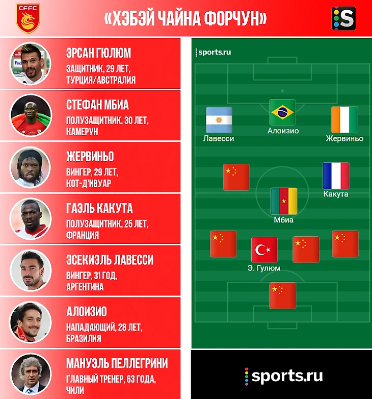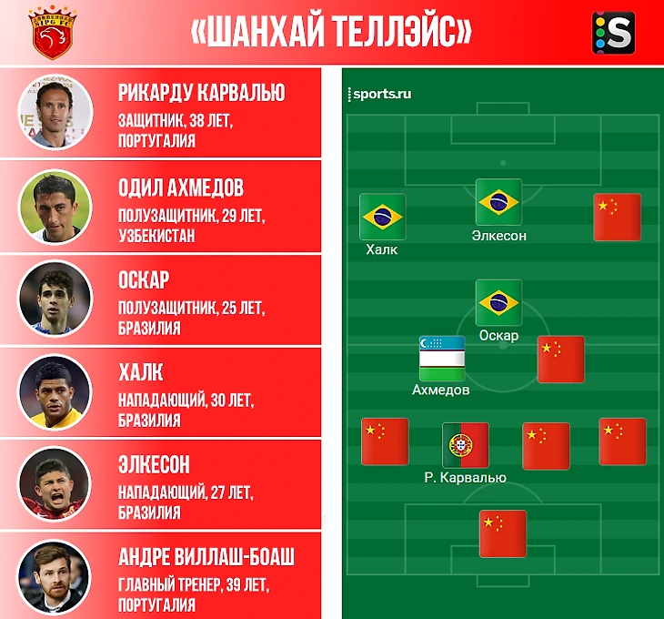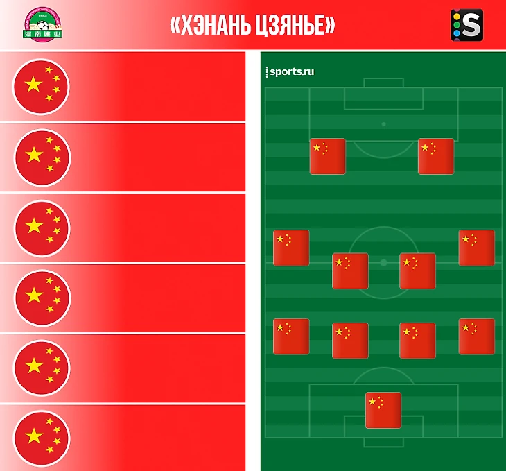 Справа – то, как схематично выглядят идеальные стартовые составы. В «Шанхай Шеньхуа» и «Хэбэй Чайна Форчун» один из игроков, указанных справа, непременно будет оставаться в запасе из-за лимита.