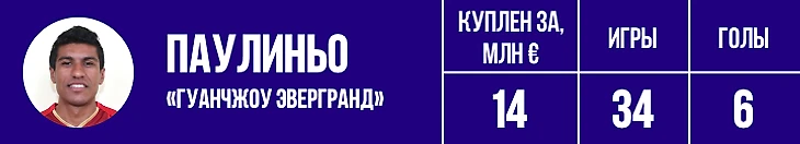 Паулиньо махнул в Китай в 26, подписав контракт сроком на четыре года. Полузащитник старается, не отбывает номер, выиграл с клубом местную ЛЧ и чемпионат страны, но в сборную больше не зовут.