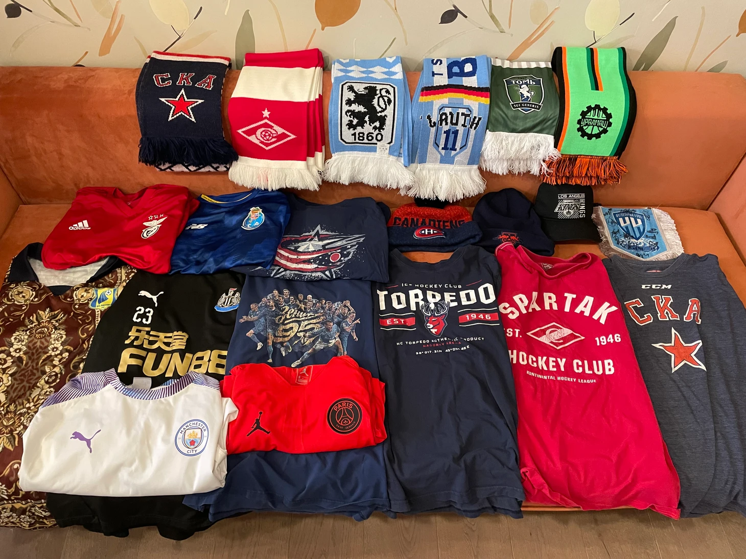 У меня насчитывается где-то 76 различных оригинальных джерси российских и зарубежных футбольных и хоккейных клубов (в том числе и игровые джерси со спортсменов). Я храню их в шкафу и иногда демонстрирую своим друзьям — это мой личный выставочный центр :) Если выделить наиболее ценные для меня экземпляры, то это будут: 1) джерси Бекхэма, МЮ, с Суперкубка 98 года; 2) Аршавин, Арсенал; 3) игровая джерси Максима Кицына (тот самый, который в 2011 обыгрывал канадцев на МЧМ), Металлург Нк; 4) игровая джерси Лебеденко, Торпедо М.; 5) Мюнхен 1860, 1998 года; 6) Дэн Марино (тот самый из фильма Эйс Вентура), Майами Долфинс; 7) игровая джерси Павлюченко с его автографом, «знамя труда»; 8) Билялетдинов, Эвертон; 9) ранняя джерси Джеррарда с 17 номером, Ливерпуль; 10) игровая джерси Сергея Шустикова, Торпедо М.; 11) игровая джерси Шатова, Анжи; 12) джерси Манчестер Юнайтеда легендарного сезона 1999 года. И еще много-много других.
