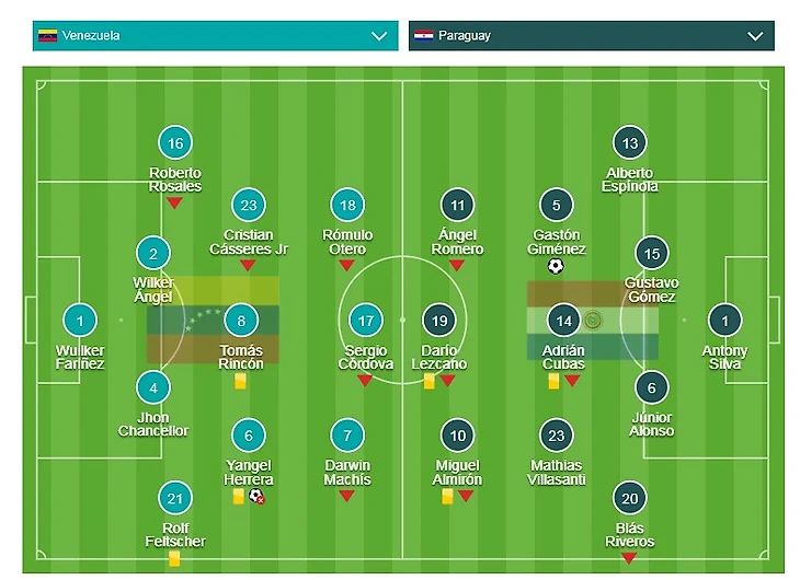 Счёт был открыт, когда уже казалось, что игра катится к закономерной ничьей - простая, но от того не менее эффективная четырёхходовка Алонсо-Ромеро-Эспинола-Хименес стала полной неожиданностью для защиты Венесуэлы. Накрыть натурализованного аргентинца оказалось некому, не мог спасти "винотинто" и талантливый Фариньес - 1:0 в пользу Парагвая.