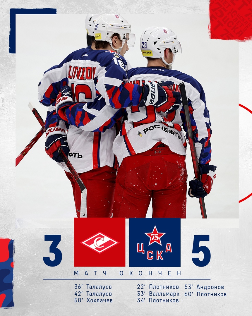 +11 17 сентября 2021, 16:14 Побеждаем в дерби «Спартак» Армейцы обыгрывают в гостях принципиального соперника в драматичном поединке со счетом 5:3 (0:0, 3:1, 2:2).