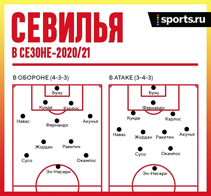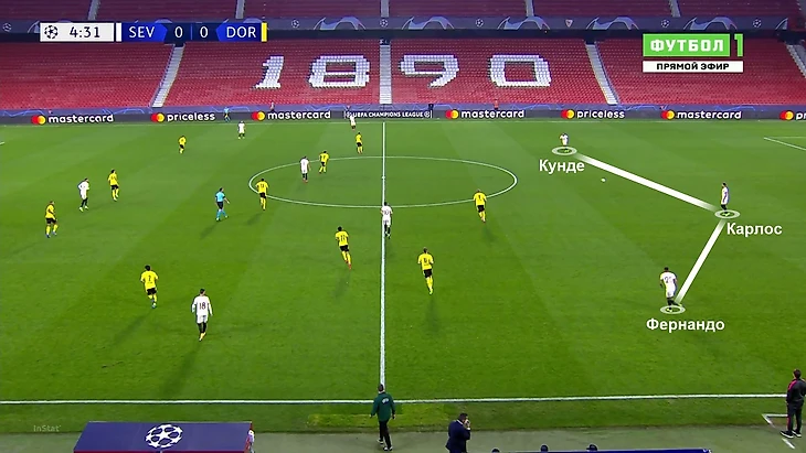 Также важен общекомандный прессинг «Севильи»: команда Лопетеги постоянно прессингует и этим держит соперника на безопасном расстоянии. Такая тактика хорошо работает только при полной отдаче каждого игрока. Связка Кунде и Карлоса идеально вписывается в общий рисунок игры, но не определяет его.