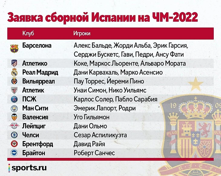 Испания приехала в Катар одной из самых юных сборных на ЧМ-2022 – по среднему возрасту состава младше испанцев только Гана и США. Это вовсе не мешает команде Энрике подходить к первому матчу в ранге одного из главных претендентов на звание чемпионов мира.