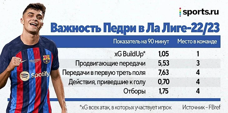 Педри совершает десятки вот таких важных, но не очень заметных действий. Из-за этого его влияние на «Барсу» и сборную Испании слишком часто недооценивают, но оно существенное и в статистическом плане.