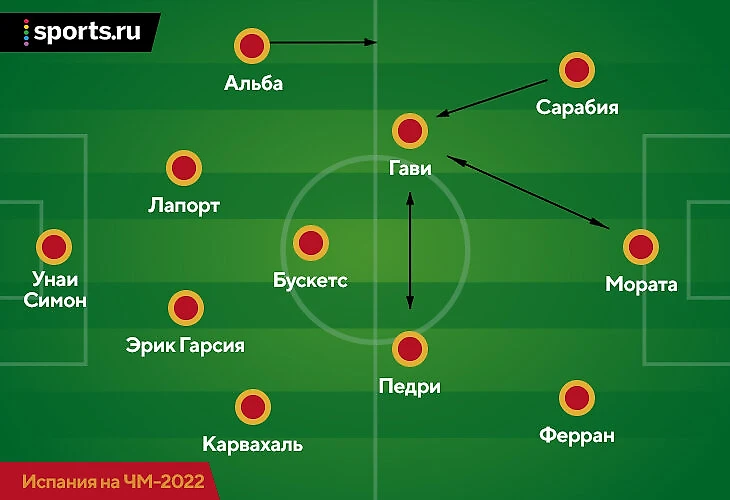 Энрике отдельно отмечает игру Гави в атаке, потому что часто использует его там. В сборной Паес иногда играет в роли ложной девятки – на ЧМ этот вариант представить сложно из-за железного места Альваро Мораты в основе, но как дополнительная опция в атаке Гави подходит. Пока Паес едет полузащитником, который постоянно меняется позициями с остальными и не ограничен в движении.