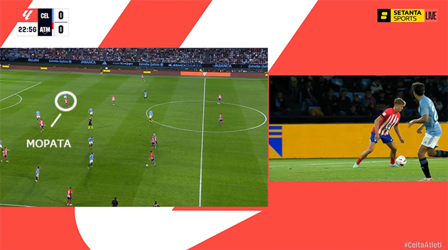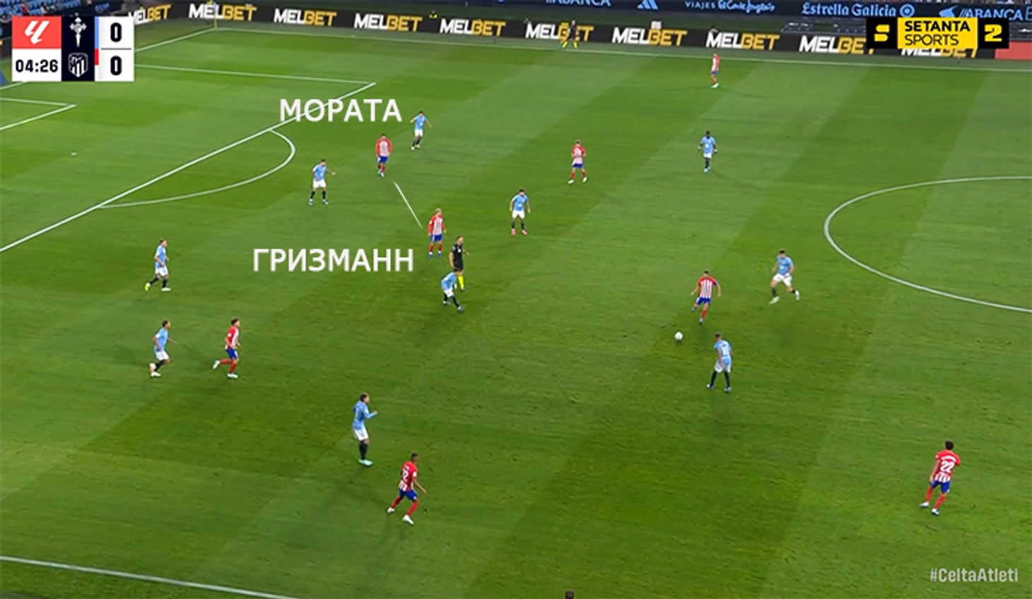 Мората может исполнять столба, но тренер не ограничивает Альваро. Сейчас он чаще играет на линии офсайда, хотя эпизодически может опускаться в глубину и помогать в обороне. Однако этой версии «Атлетико» Альваро как наконечник нужнее, чем Мората времен «Юве» или сборной Луиса Энрике, который создавал свободное пространство для других, жертвуя своими моментами.