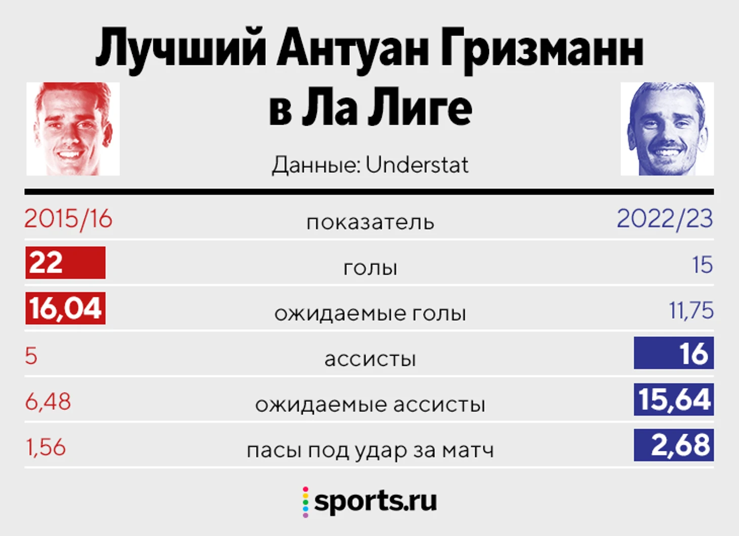 Еще весной мы писали, что такой резкий прогресс Гризманна неслучаен. Психологию не стоит недооценивать: сначала «Атлетико» выкупил контракт из «Барсы», закончив издевательские выходы после 60-й минуты, а потом и фанаты простили француза за скандальный переход. Ментальный вопрос всегда был важен для Гризманна: когда его критиковали вне поля, он терялся и на поле (это было даже в «Сосьедаде», «Барса» – абсолют).