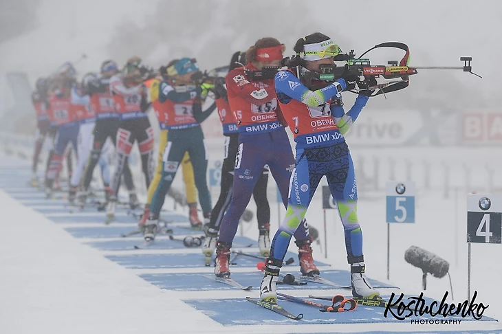 А так все хорошо начиналось для белорусских биатлонисток в эстафете. Надежда Скардино замечательно отработала свой стартовый этап, передав эстафету на 3 месте. Надежда Писарева, заменившая приболевшую Ирину Кривко, справилась в силу своих возможностей: точно отстреляла на лежке, использовала 3 доп.патрона на стойке, на последнем круге уступила 2 места и отправила на дистанцию Динару Алимбекову девятой с отставанием 1:19.5. Для молодой биатлонистки эта был первый эстафетный старт за главную команду. И, к сожалению, Динаре не удалось совладать со своими нервами и оберхофским ветром: на первом рубеже неточными вышли 6 выстрелов из 8. Три штрафных круга, плюс три доп.патрона на стойке - и белорусская сборная откатилась на 16 место. Дарья Домрачева ушла на свой этап с отставанием 4:33.7 от лидера. Но и у самой Даши совсем не заладилась в этот день стрельба. Нашему лидеру тоже не хватило доп.патронов, чтобы закрыть все мишени. Штрафной круг в эстафете - такого с Домрачевой, если память меня не подводит, до этого не случалось. А в это время лидер гонки Жюстин Бреза пришла уже на стойку. И белорусок сняли с гонки за отставание на круг. Такое развитие сюжета вряд ли кому из болельшиков даже в кошмаре снилось.