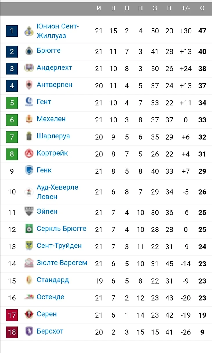 А вот чемпион розыгрыша 18-19 Генк упал на 9 место, хотя в этом сезоне играл в ЛЕ, но вылетел с треском. Хотя имеет боеспособный состав и супер перспективный молодой талант - Мартина Вандервурда