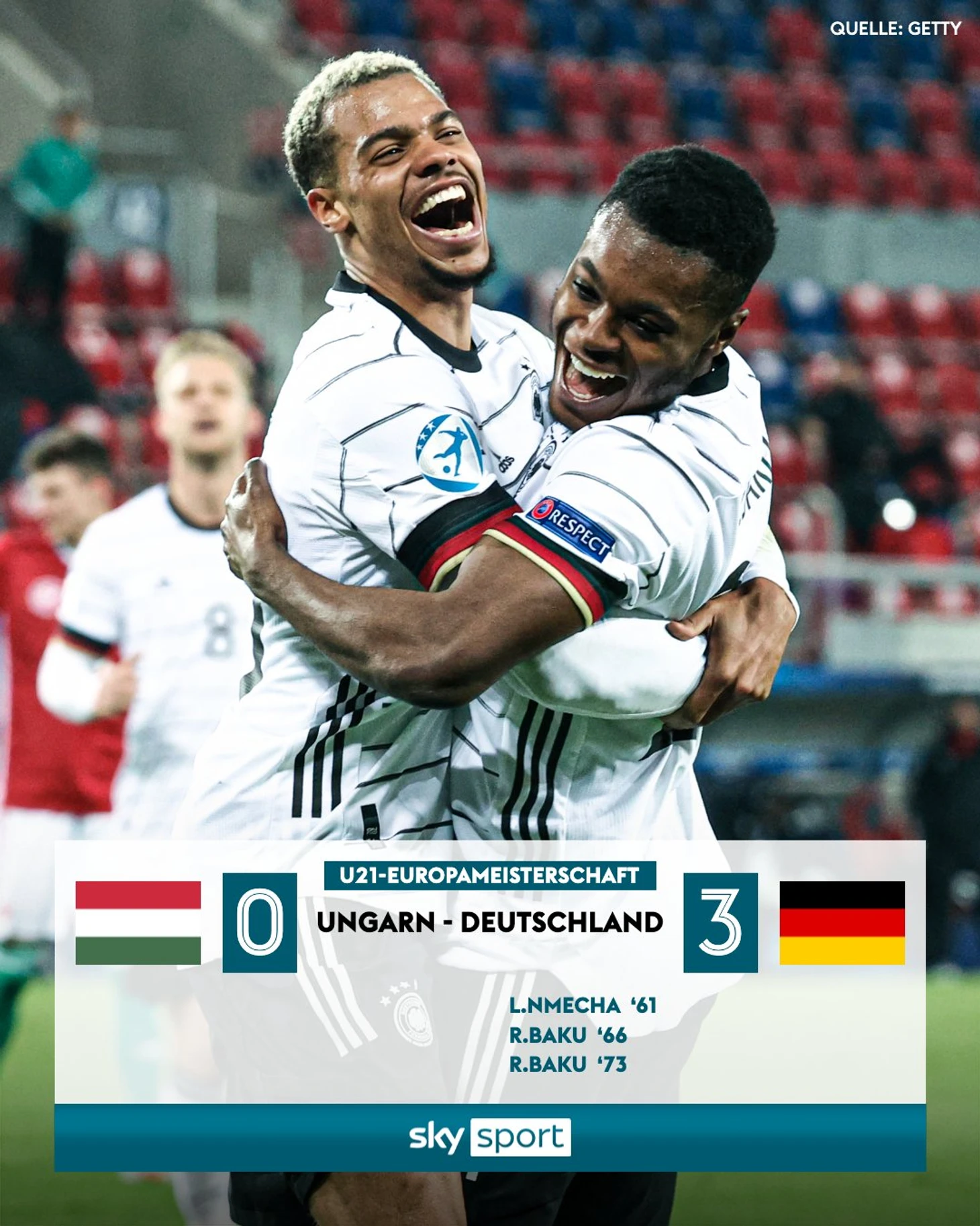 Германия обыграла Венгрию, что называется, буднично. Команда Штефана Кунца долго входила в игру, поэтому сумела показать достойный футбол лишь во втором тайме. Первая же половина встречи больше напоминала весьма бесполезное владение мячом в пропорции 70/30. Что можно сказать о сборной именно в командном плане? Вертикально. Именно так Германия проводила основной процент своих атак и, конечно, все они были позиционными — Венгрия отказывалась играть первым номером даже уступая в счёте. Розыгрыш всегда начинался ещё в линии защиты — к Шлоттербеку и Пиперу опускались Дорш или Майер, которые в роли бокс-ту-бокс продвигали мяч вперёд и выполняли диспетчерские функции. В общем и целом, всё максимально просто: диагональные открывания вингеров и нападающих, фланговые навесы и качественная игра на втором этаже. Отдельно похвалим Раума и Вагномана — крайних защитников, которые сегодня отлично подключались к атакам и выполняли по-настоящему филигранные навесы, ставшие, очевидно, одним из компонентов плана на игру.