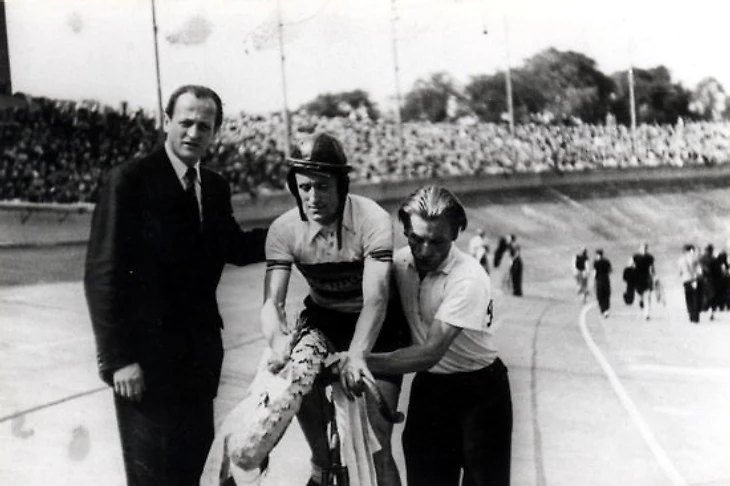 Вальтер Ломанн на стадионе в Вуппертале после установления очередного рекорда. 1954 год.