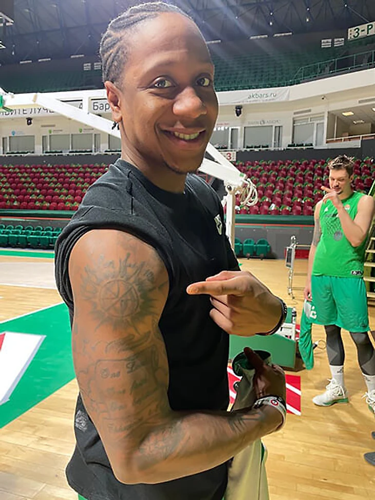 – Сбился со счета. Первое тату – баскетбольный мяч на моем правом плече, а над баскетбольным мячом написано: «Только Бог может судить меня». На самом деле, нарисовал это в старших классах на бумаге, а потом пошел и набил на свое тело. Последняя татуировка – на спине, она довольно большая, поэтому на нее ушло много времени.