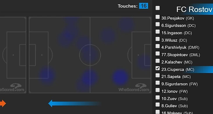 Все мы понимаем, что Гацкана сложно заменить, ведь он является «Гаттузо» нашего Чемпионата. Поэтому от Чуперки не нужно было ждать выдающегося матча, но как я уже и сказал выше, футболист выполнял такие же функции по движению, как и Гацкан в прошлом туре. Это очень важно. По тепловой карте мы видим, что Валерий также выдвигался в центр поля и пытался помогать фланговым защитникам.
