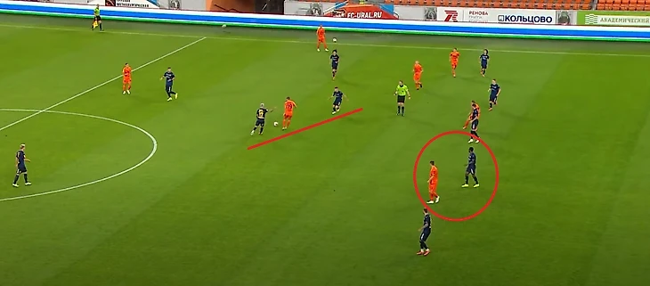 Точно такую же он допустил в игре против "Урала". Упустил забегающего игрока, не видел этого игрока, и сделал несколько шагов вперед, как это он сделал и вчера.