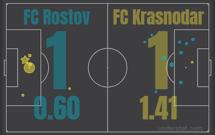 Понятно, что у Краснодара тоже не много моментов было, но они вели эту игру, постоянно в меньшинстве оказывали давление на нашу оборону. Если мы взглянем на статистику XG, то здесь будет полное доминирование гостей.