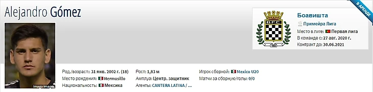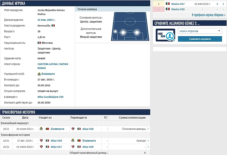 Игрок подходит под все наши критерии и поэтому занимает в нашей команде позицию центрального защитника. Игрок 27 августа перешёл на 1 сезон в аренду в португальскую лигу в команду Боавишта из молодёжной команды мексиканского клуба Атлас.