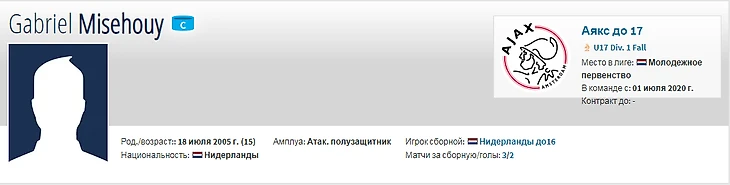 Ещё один игрок представляет команду из Нидерландов. Габриель играет в центре поля. Сейчас он выступает за команду Аякса U17 и юношескую сборную Нидерландов U-16. Игрок обладает очень большим талантом. Стиль его игры можно назвать как "бокс ту бокс". Он и в атаку испивает и в оборону возвращается. Из сильных качеств отметим передачи, видение поля и выносливость.