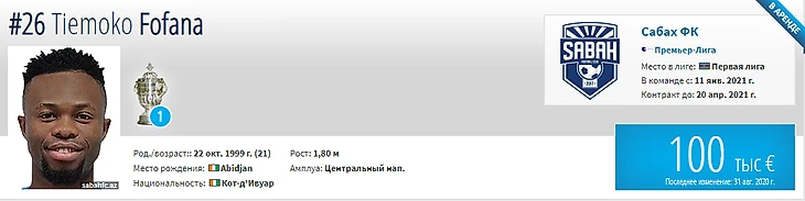 Клуб Сабах взял Тьемоко в аренду у финского клуба Ильвес. Из-за возраста я всё же не могу поставить его выше в нашем рейтинге. Он очень интересный футболист и достаточно сильный для уровня азербайджанской лиги. Как только он пришёл в клуб, то сразу стал попадать в стартовый состав и уже провёл 4 матча за Сабах. Основная его позиция центральный нападающий, но может сыграть и на фланге атаки. Из качеств выделим скорость, ловкость и работу с мячом.