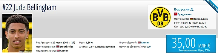 В ноябре 2020 года Джуд дебютировал в составе национальной сборной Англии. Он моложе Рейны, и пока меньше играет за Боруссию, но думаю, со временем он будет становиться более важной частью команды. Главное спортивное медиа Франции L’Equipe поставило Джуда на высокое 6-е место в своём топ-50 самых талантливых футболистов мира родившихся после 1 января 2001 года. Я же оцениваю Беллингема выше Рейны.