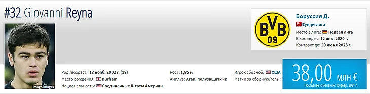 На пятое место поставим 18-ти летнего полузащитника дортмундской Боруссии. Главное спортивное медиа Франции L’Equipe поставило Рейну на высокое 5-е место в своём топ-50 самых талантливых футболистов мира родившихся после 1 января 2001 года. Рейну можно смело назвать будущем сборной США, которая в ближайшие пару лет соберёт сборную, которая будет претендентом на самые высокие места на чемпионате мира.