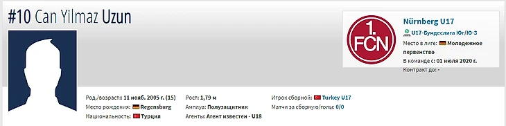 Молодой турецкий атакующий полузащитник и Нюрнберга уже сейчас вызывает большой интерес к себе со стороны сильных немецких клубов. В свои пятнадцать лет он выступает за Нюрнберг U-17, при чём достаточно успешно в 9 матчах забил 6 мячей. Скорее всего он сделает выбор в пользу сборных Турции, а не Германии, так там у него больше шансов себя проявить. Будем внимательно следить за его развитием.