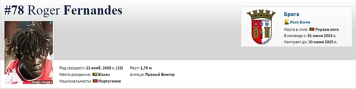 На первое место поставим самого молодого футболиста выходившего на поле в матчах чемпионата Португалии (15 лет 8 месяцев 12 дней). Парень получал игровое время в составе одной из сильнейших команд Португалии. Да, парня в основу вызвали из-за отсутствия бразильца Галено и когда тот вернулся в состав, то Роджер покинул основную команду. Но у парня очень большой талант и скоро он должен снова вернуться в основную команду Браги.