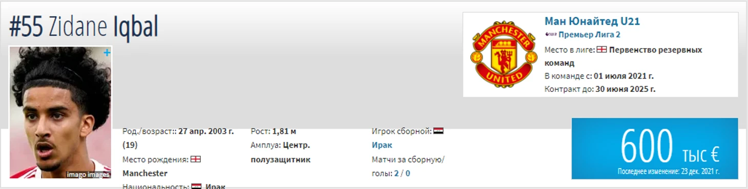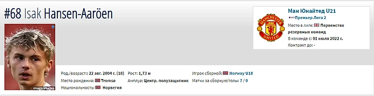 Статистика за основу Манчестер Юнайтед: 3 матча (76 минут) 0+0