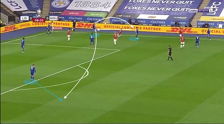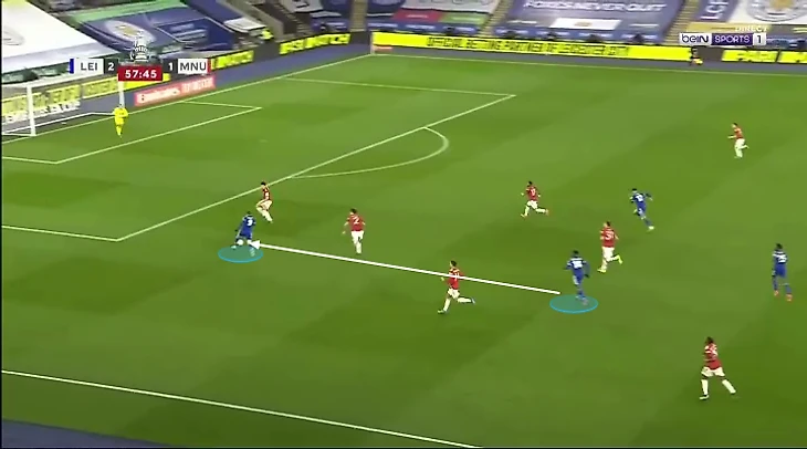 «Манчестер Юнайтед» плохо боролся в этих сценариях. Футболист, выполняющий вброс мяча, либо Уан-Биссака, либо Теллес, обычно оставался лишь с одним вариантом, и вариант этот оказывался в окружении игроков соперника. Происходила быстрая смена владения, позволяющая «Лестеру» прорываться. Защита «Юнайтед» регулярно оказывалась не готова, потому что один из фулбэков был буквально за пределами поля.