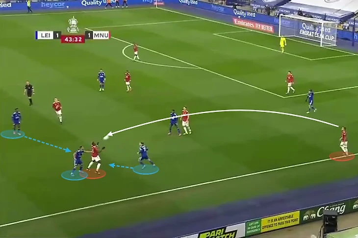«Лестер Сити» превосходил соперника во всех аспектах кубковой встречи с «Манчестер Юнайтед» в воскресенье. Их билд-ап был лучше, прессинг – более интенсивный, они предлагали больше взаимодействий в атакующей зоне и в значительной степени доминировали в центральной. Их уровень организации был выше по всему полю.