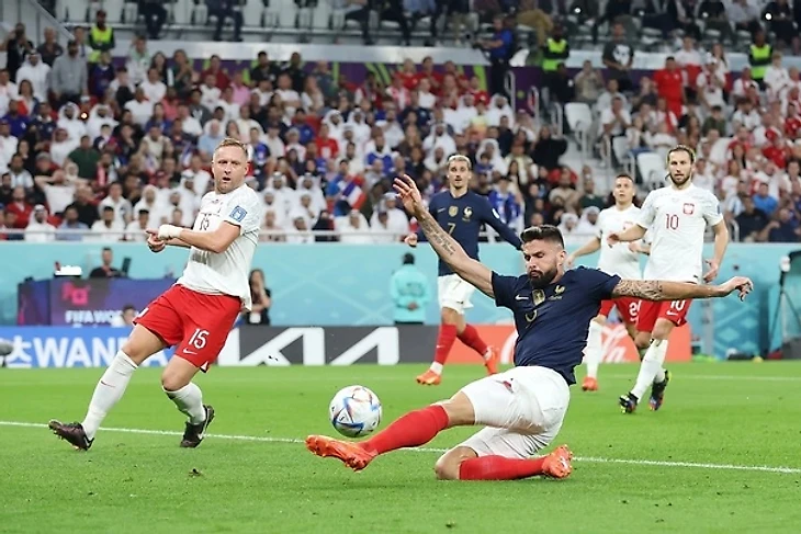 Франция во втором тайме полностью контроллировала игру, и самое главное, что Жиру красивым падением через себя, забил гол, но там нарушение в атаке и гол отменили. В одной из атак, теряет мяч Польша, а Гризманн выносит мяч аккурат на Жиру, тот на Дембелее, который переводит на противоположную сторону штрафной и Мбаппе забивает гол 2-0.