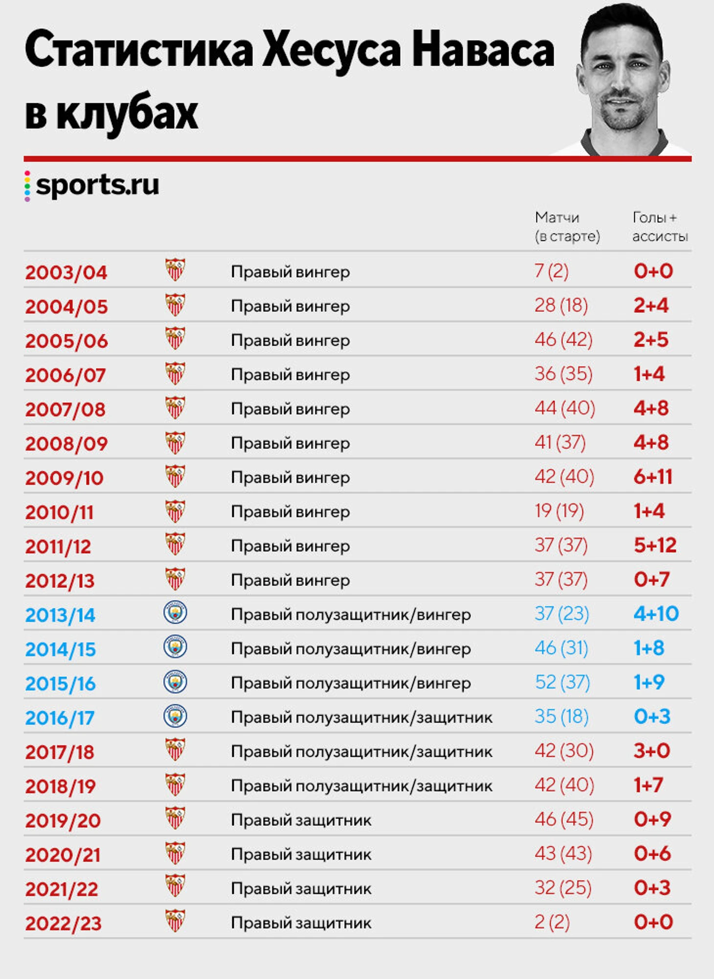 Зато есть ностальгический сюжет – защитник «Севильи» Хесус Навас встретится с клубом, в котором он был вингером и который стал для него символом победы над психологической катастрофой. В ответной встрече «Этихад» точно встретит испанца овацией – он был важной частью чемпионского «Сити», хотя его статистика никогда не впечатляла.