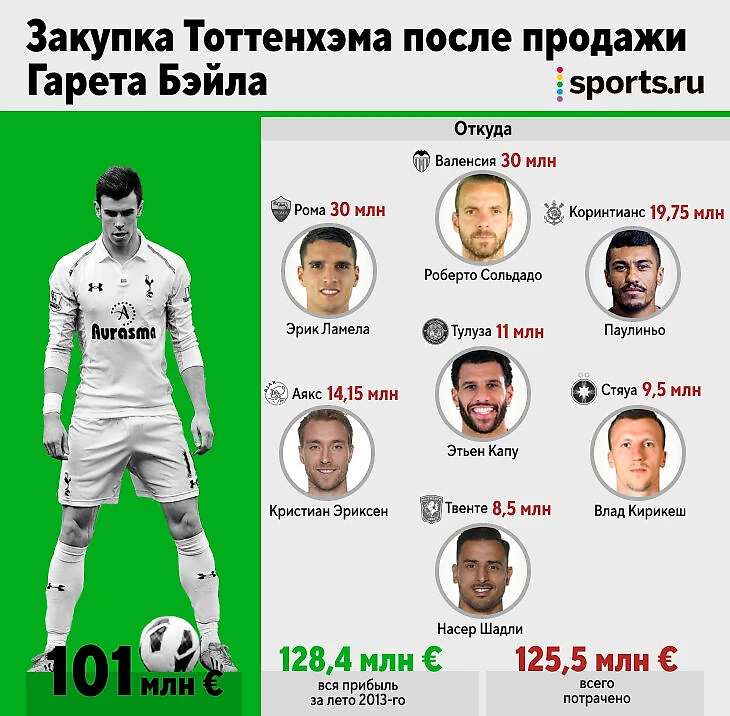 После завершения сделки с «Реалом» на Лондон упали большие деньги, которые нужно было инвестировать в состав. Под новую стратегию на «Уайт Харт Лейн» вызвонили Франко Бальдини с опытом в «Реале» и «Роме». Итальянцу дали бэйдж технического директора, доверили трансферную политику и огромный бюджет. Больше «Тоттенхэм» тратил только в сезоне-2008/09: 144 млн евро улетели на Романа Павлюченко, Луку Модрича, Ведрана Чорлуку, Дэвида Бэнтли, Робби Кина, Джермейна Дефо и других.