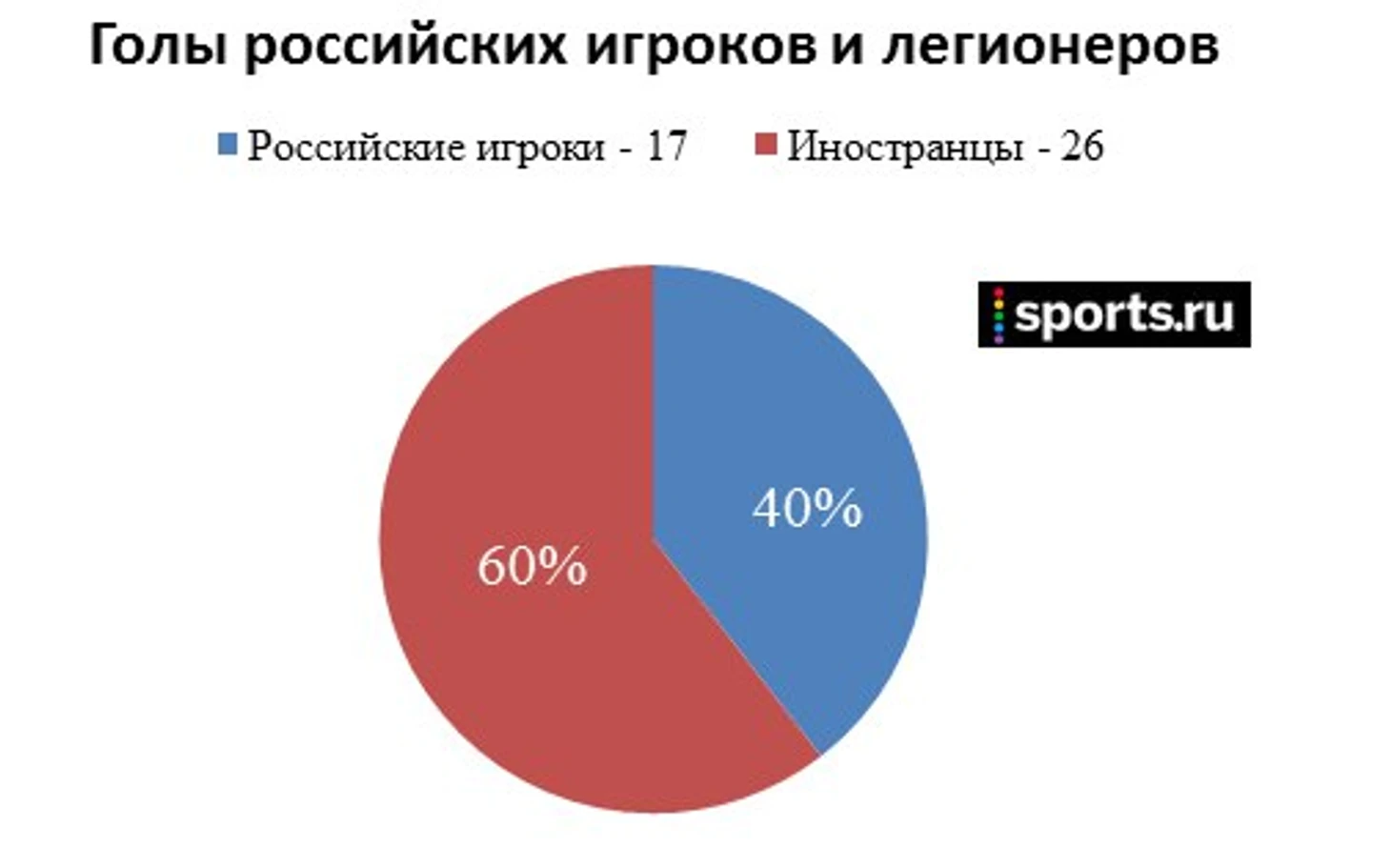 Наконец, голы забитые игроками с российскими паспортами против мячей иностранцев.