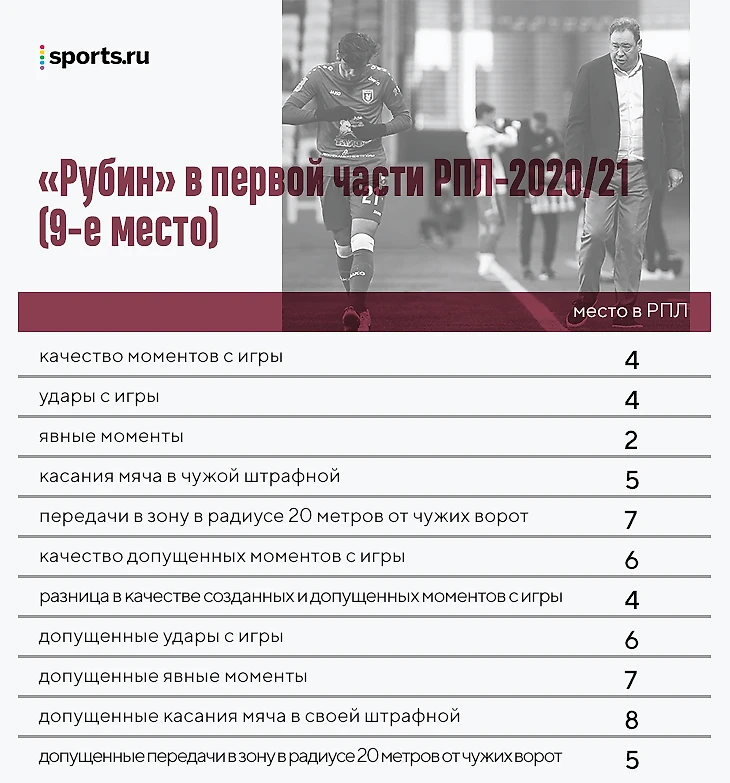 Во второй части сезона-2020/21 «Рубин» атаковал менее остро, но и в первой казанцы не были доминирующей командой. В итоге по всему сезону: