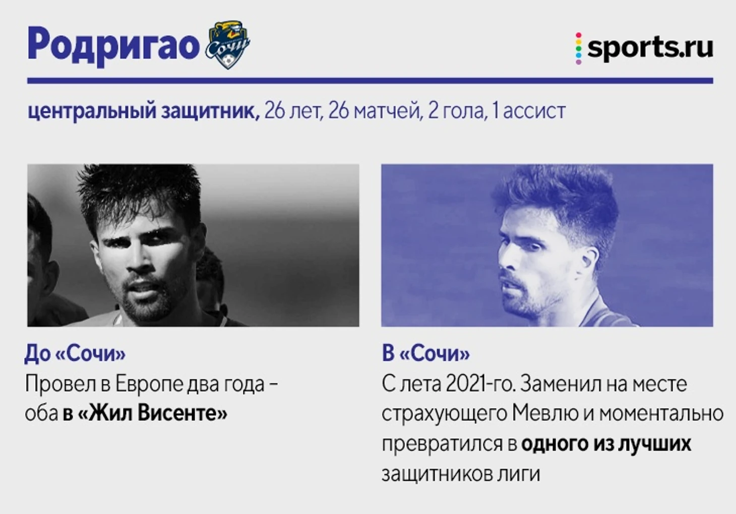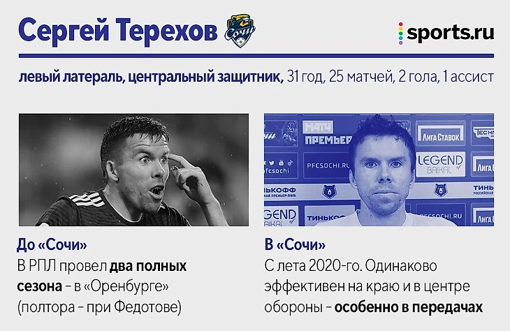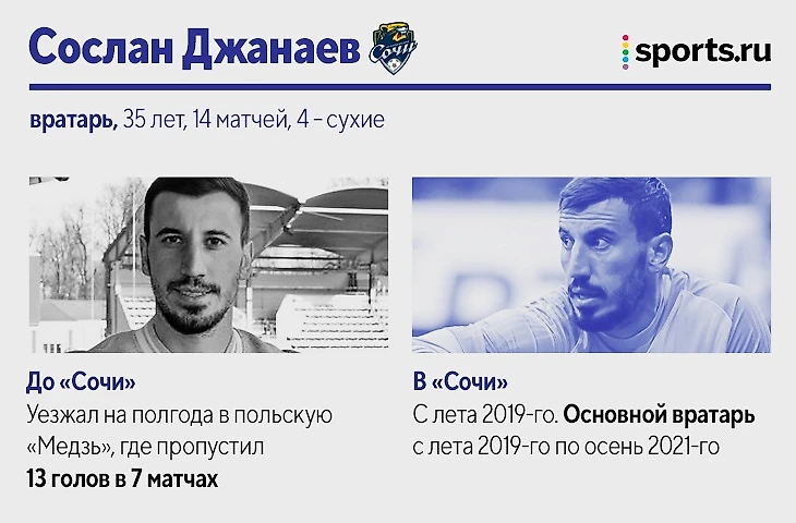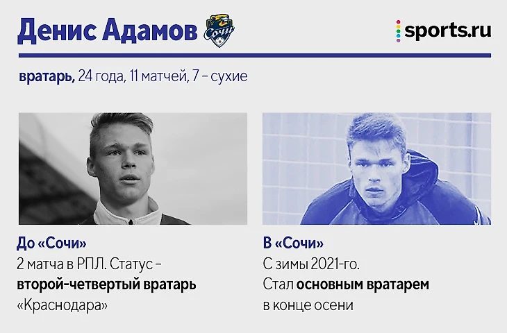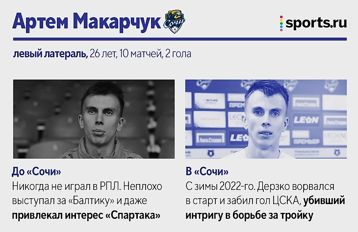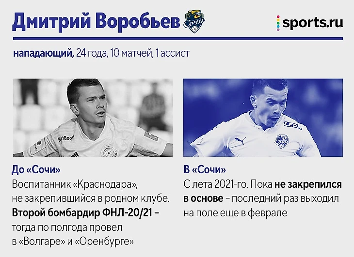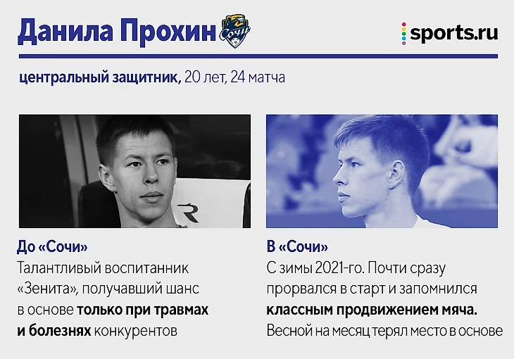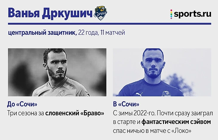 Также за «Сочи» в РПЛ-2021/22 играли: Максим Барсов, нападающий (10 матчей, 2 гола). Лучший бомбардир «Сочи» в ФНЛ не смог стать основным после разрыва крестов. Вторую часть сезона провел в аренде в «Балтике». Матео Барач, центральный защитник (10 матчей). На старте сезона играл в основе, но затем проиграл конкуренцию Юрганову. Вторую часть сезона провел в аренде в «Крыльях Советов». Даниил Павлов, полузащитник (4 матча). 19-летний игрок в последний месяц выступает за бресткое «Динамо». Эмануэль Маммана, центральный защитник (4 матча). Аренда из «Зенита» в «Сочи» так и не помогла вернуться на уровень до двух разрывов крестов. Теперь – в «Ривер Плейте».
