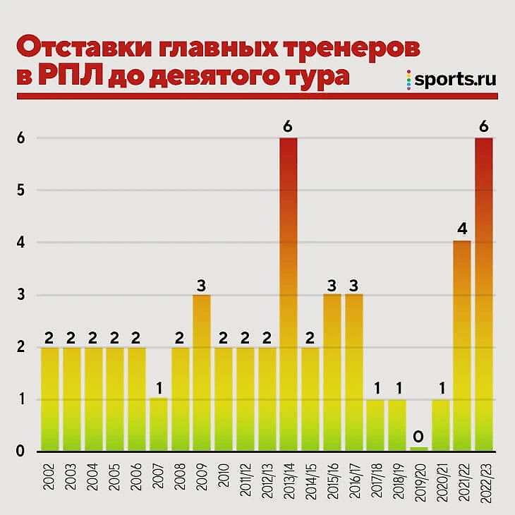 Да, это повторение рекорда РПЛ. Столько же на старте увольняли только в сезоне-2013/14