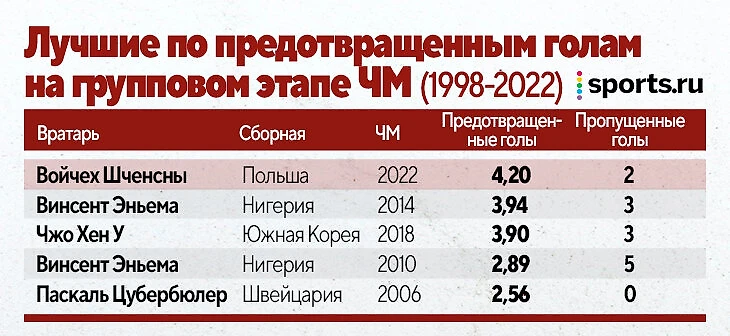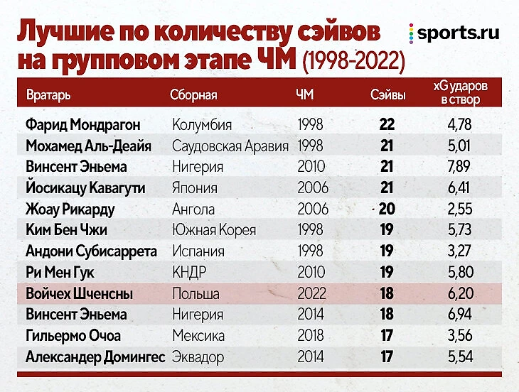 Продвинутые данные впечатляют еще сильнее – Шченсны установил рекорд групповых этапов ЧМ по предотвращенным голам.
