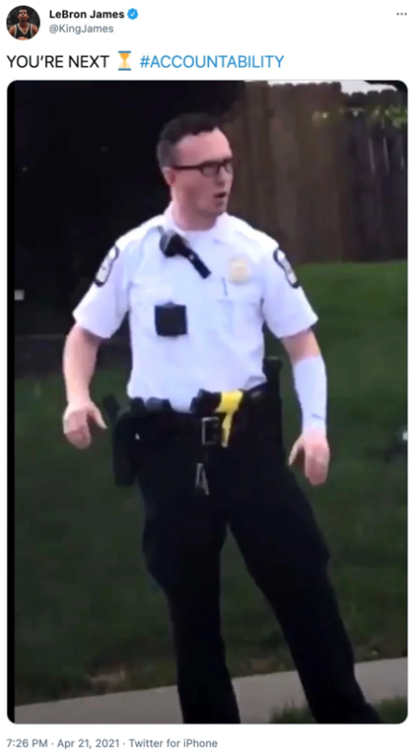 Доподлинно неизвестно, что Джеймс имел в виду: ссылался ли на судебное решение в отношении еще одного полицейского Дерека Шовина, признанного виновным в убийстве Джорджа Флойда, или, быть может, фактически призывал к насилию в адрес служителя закона. Впрочем, послание продержалось на странице недолго – спортсмен удалил твит.
