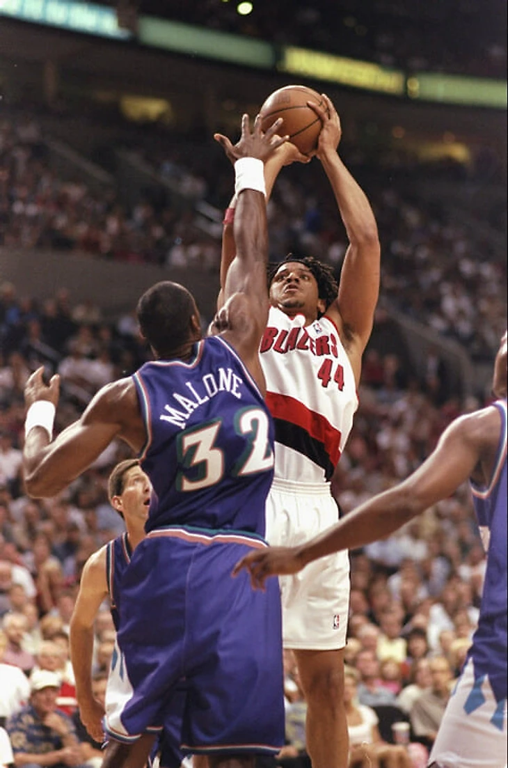 Тяжелый форвард Брайан Грант провел в НБА добротную, но совсем не звездную карьеру. В 1994-м году восьмой номер драфта попал в «Сакраменто», однако после третьего сезона, в котором из-за различных травм принял участие всего в 24 матчах, вышел из соглашения с «Кингс» и подписал новый шестилетний контракт на 56 миллионов долларов с «Блэйзерс». Именно столько стоил в те времена «большой» стартовой пятерки, способный регулярно демонстрировать показатели на уровне дабл-дабла. Не зря в серии первого раунда плей-офф-1998 против «Лейкерс» Грант набирал в среднем 13,3 очка и 10,8 подбора.